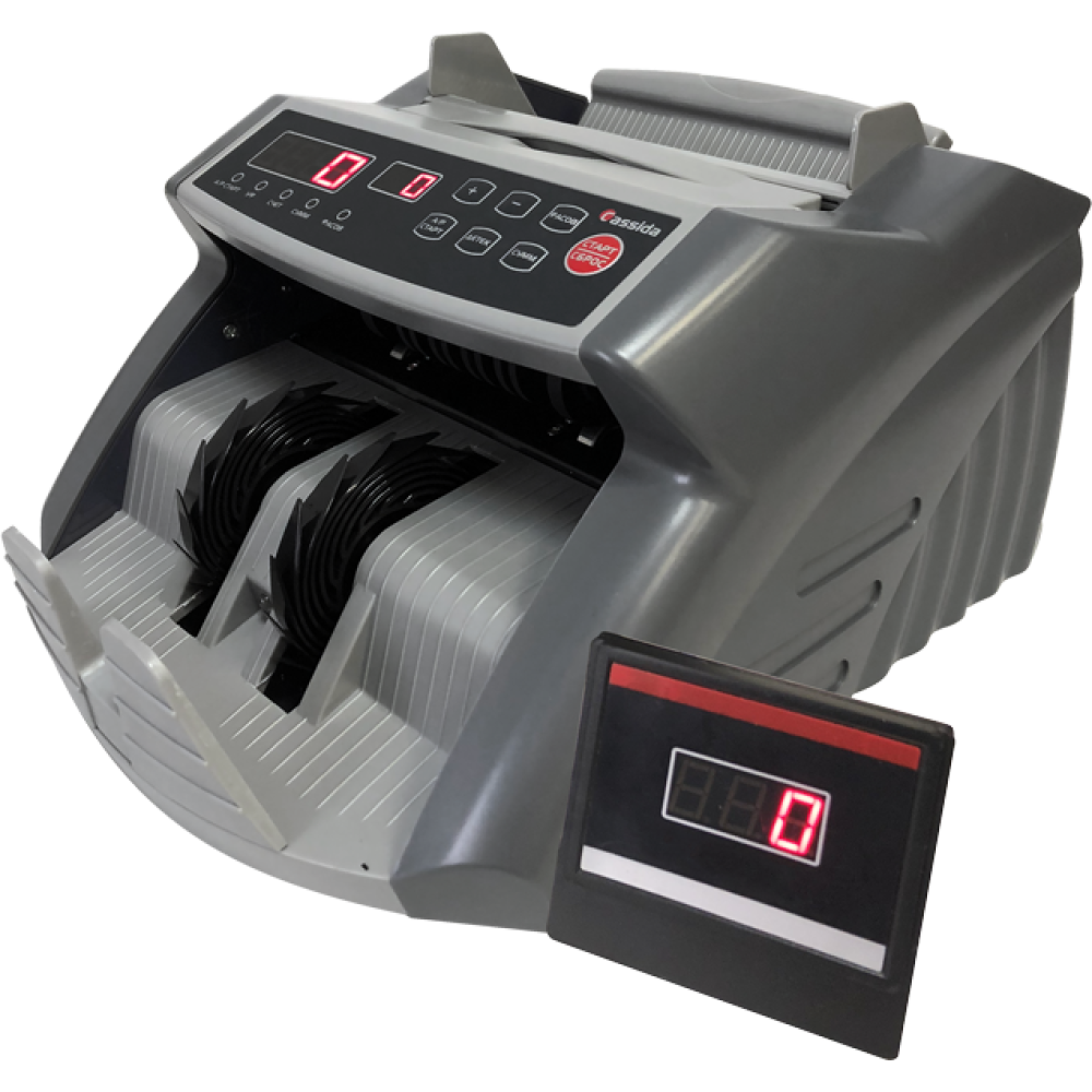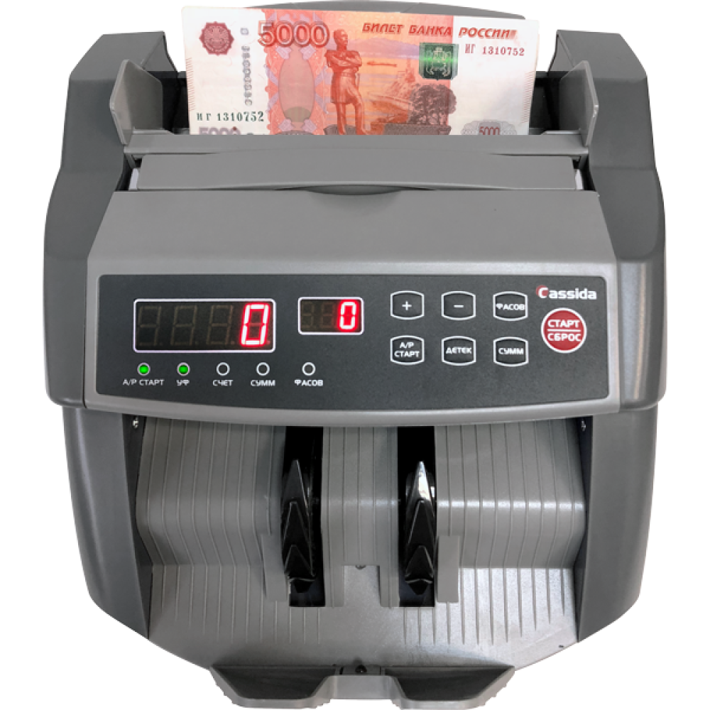 Бюджетный и компактный счетчик банкнот задней загрузки Cassida 5550 UV DL разработан для пересчета купюр одного номинала, включая распознавание 200 и 2000 рублей нового образца.