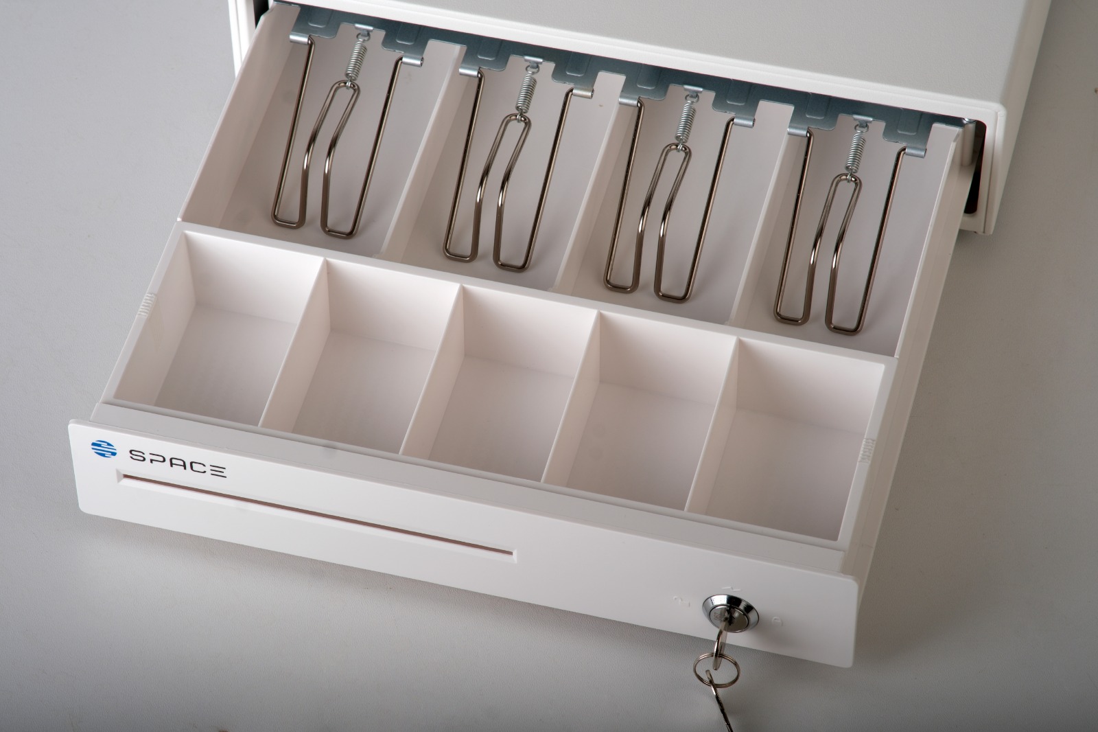 SPACE BOX-330K имеет трехпозиционный электромеханический замок – открытие, открытие про сигналу с ККТ, закрытие. Для наиболее комфортного и безопасного обустройства рабочего места кассира выбирают именно трехпозиционные денежные ящики.