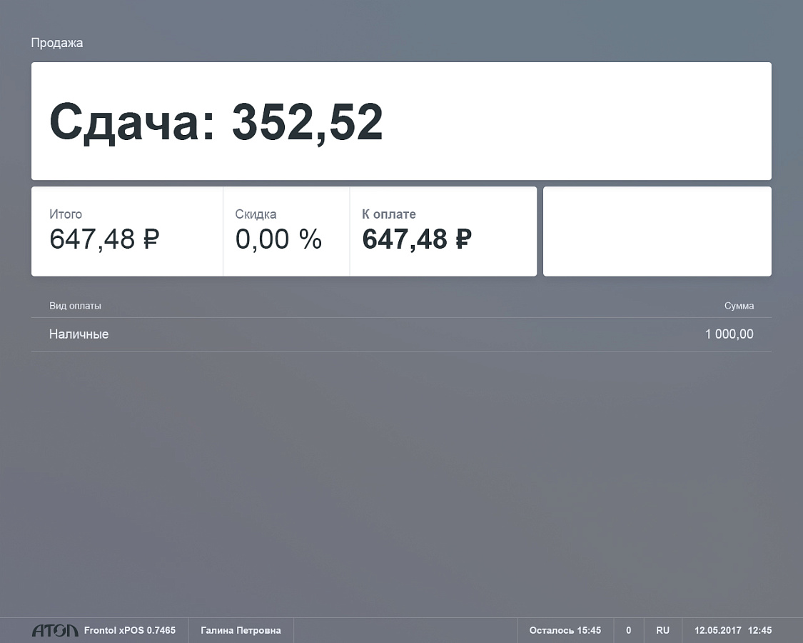 - Интерфейс Frontol xPOS 3 оснащен функцией работы с сенсорным экраном и поддержкой планшетов на базе ОС Windows 10.